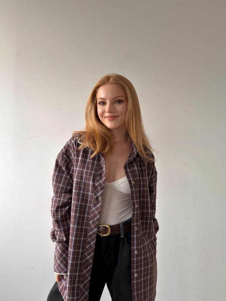 This plaid shirt is made from 100% cotton and finished with lace detailing on the collar and cuffs. Lightweight, soft against the skin, and comfortable for everyday wear, it combines a classic cut with delicate accents to create a restrained yet expressive look.